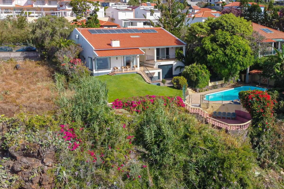 Une belle maison de 4 chambres située dans un quartier très calme et paisible de Caniço de Baixo avec une piscine privée et une vue imprenable sur l’océan Atlantique, à seulement 10 minutes à pied de la plage.